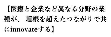 株式会社AKORIは「医療と企業など異なる分野の業種が垣根を超えたつながりで共にinnovateする」というミッション